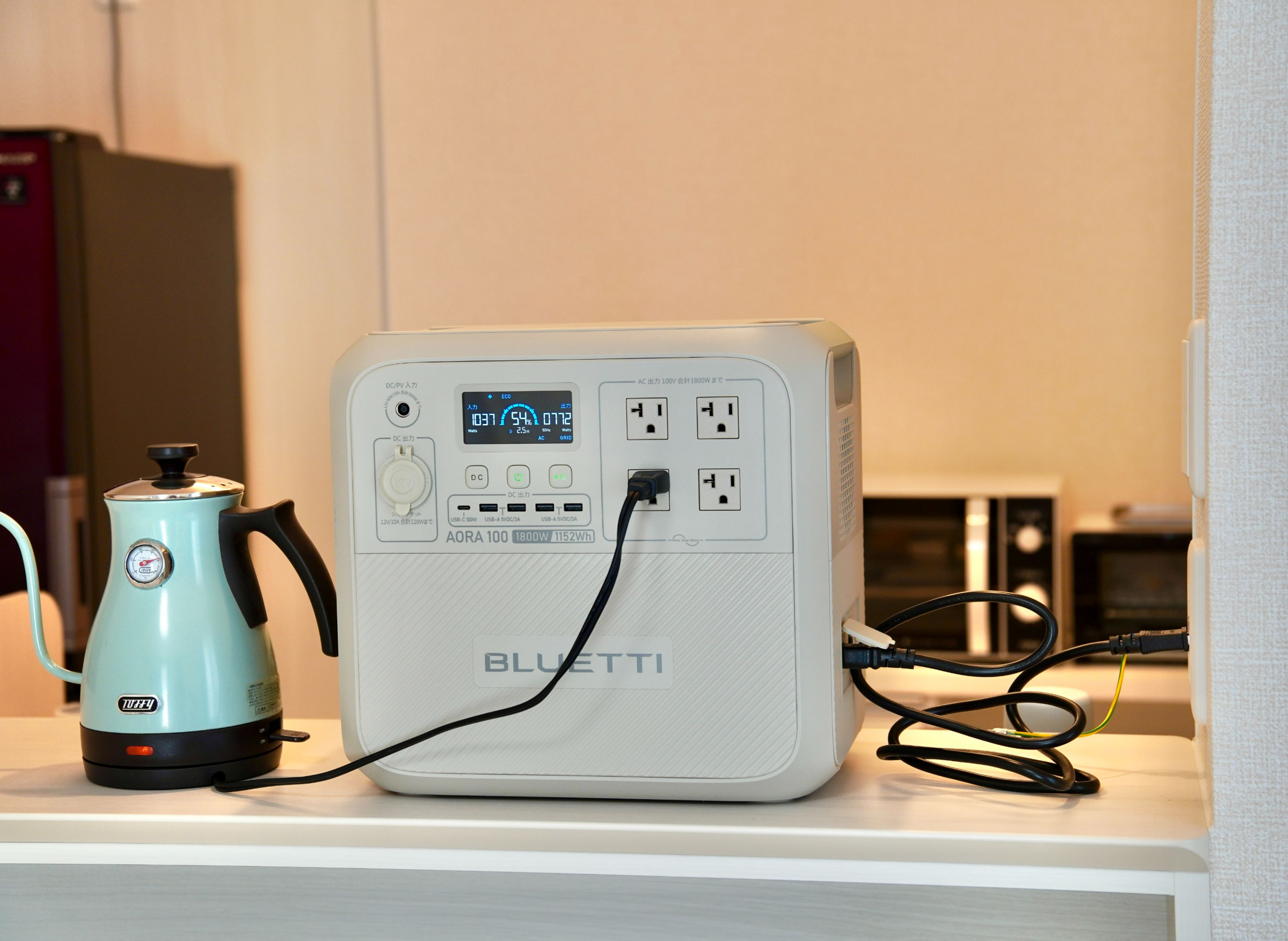 車中泊用に購入。電気毛布と、お湯を沸かす事が同時に出来たし、キッチン周りの家電が使用出来る容量です。一つ容量の小さい物と迷いましたが、出来る事が多いので、こちらで良かったと思っています。また、デジタル表記が日本語でわかりやすいです。