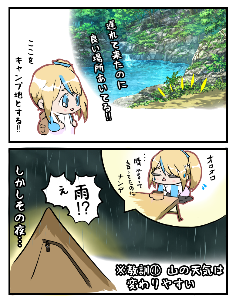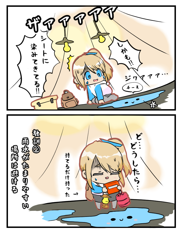 また、深夜に土砂降りの中で水たまり場所にテントをたてたキャンパーが雨でテントを移動していることも稀に見ます。設営場所選びの際にはお気を付けください。