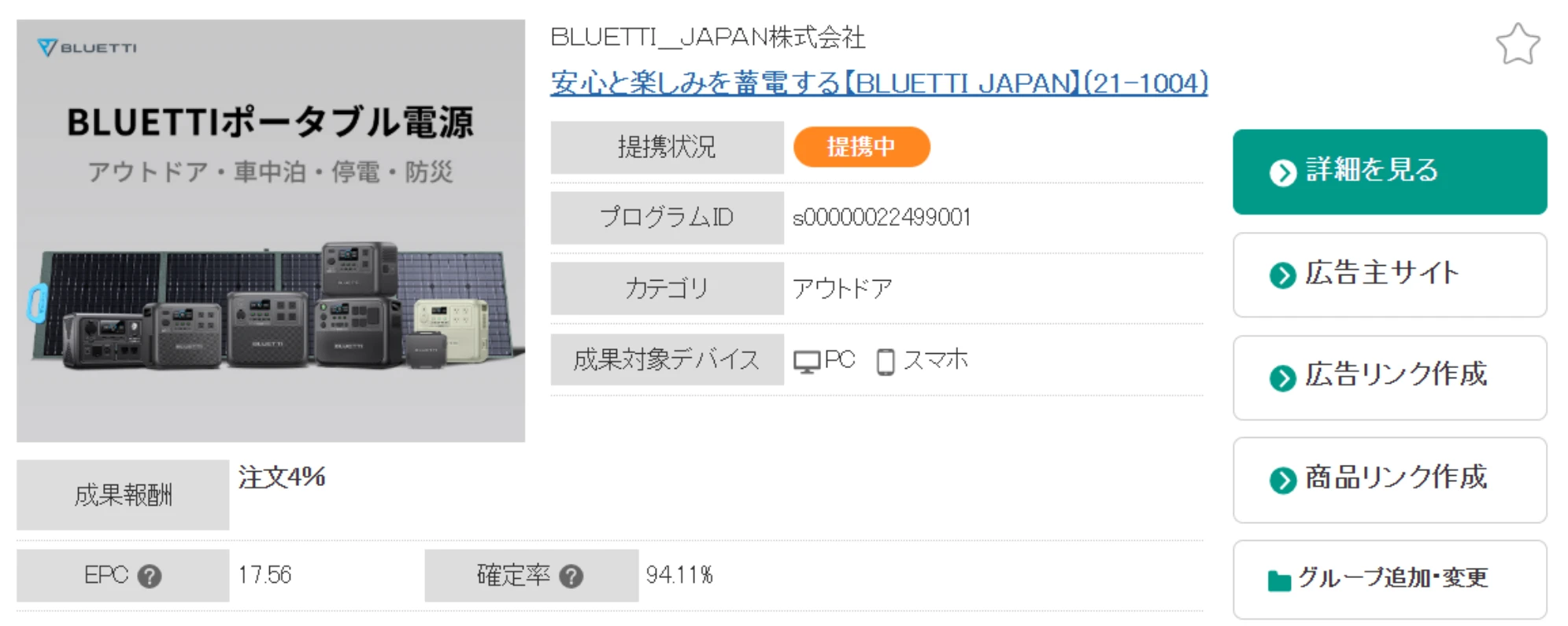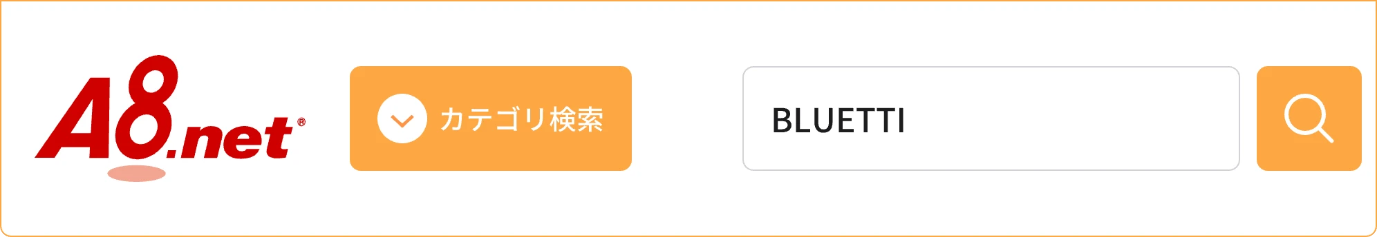 A8.netに今から登録しましょう。メディア会員登録済みの方は、「BLUETTI JAPAN」もしくは「s00000022499001」で検索してください。