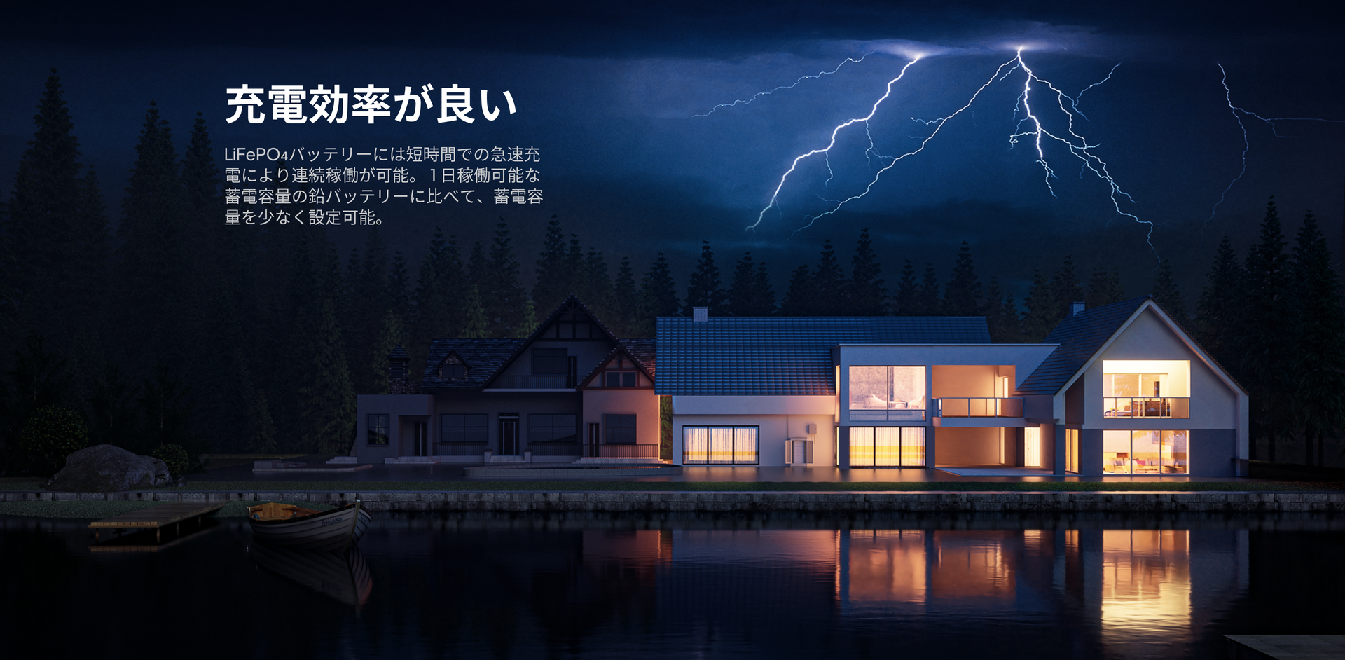 LiFePO₄ バッテリーでは低温下でも使用可能で、活用場所をほとんど問いません。季節によって零下まで冷え込む地域にもご導入、ご使用されております。
