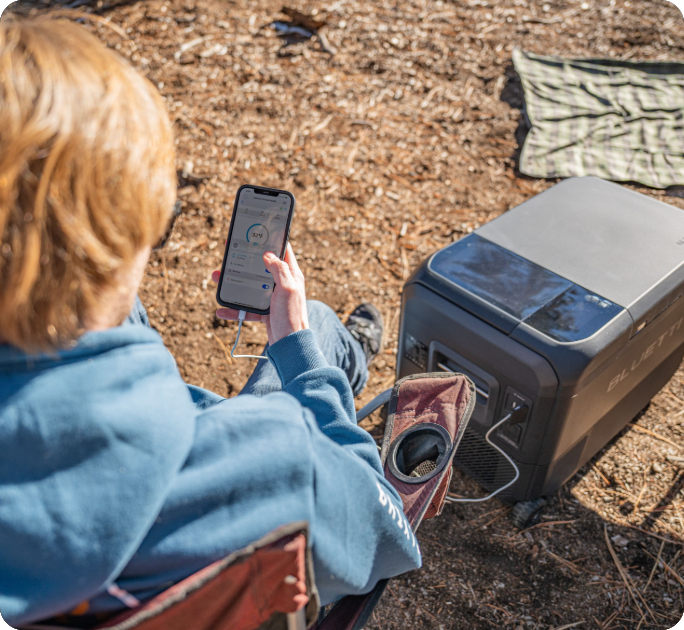 スマートフォン用BLUETTI アプリで、AC180T とマルチクーラー をどこからでも モニタリング、操作できます。使用電力状況やエラーなどをリアルタイムに監視できるほか、充電モードの選択、出力のオン/オフ、電力リフト機能などのモード設定、最新ファームウェアへのアップデートなど、指先で簡単に操作できてとても便利です。