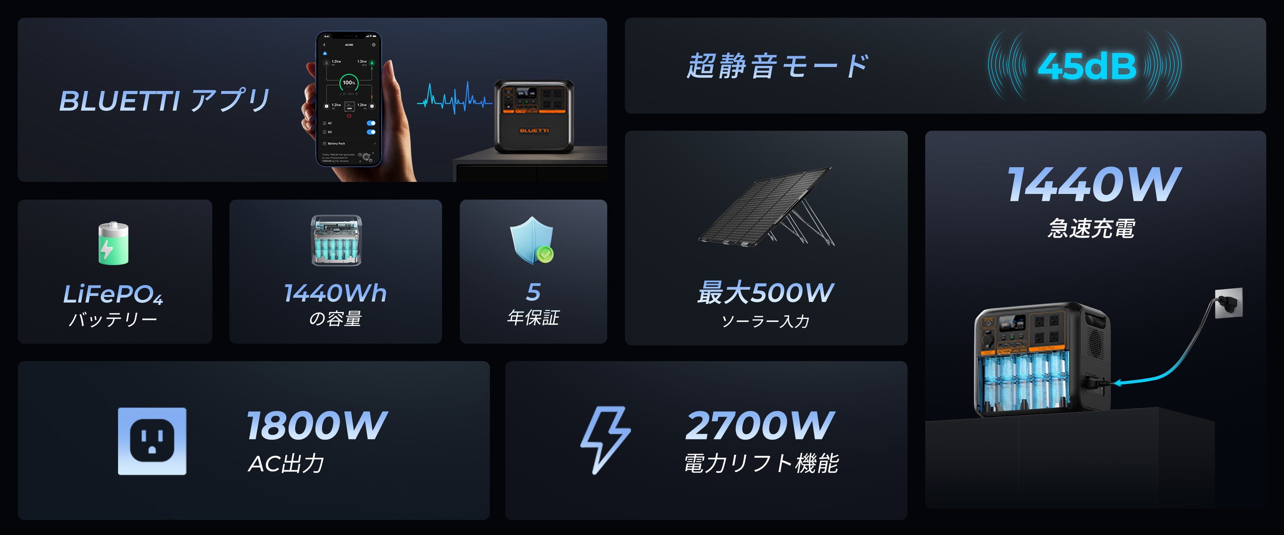 BLUETTI AC180P 大容量ポータブル電源 | 防災推奨・キャンプ |1440Wh、1800W