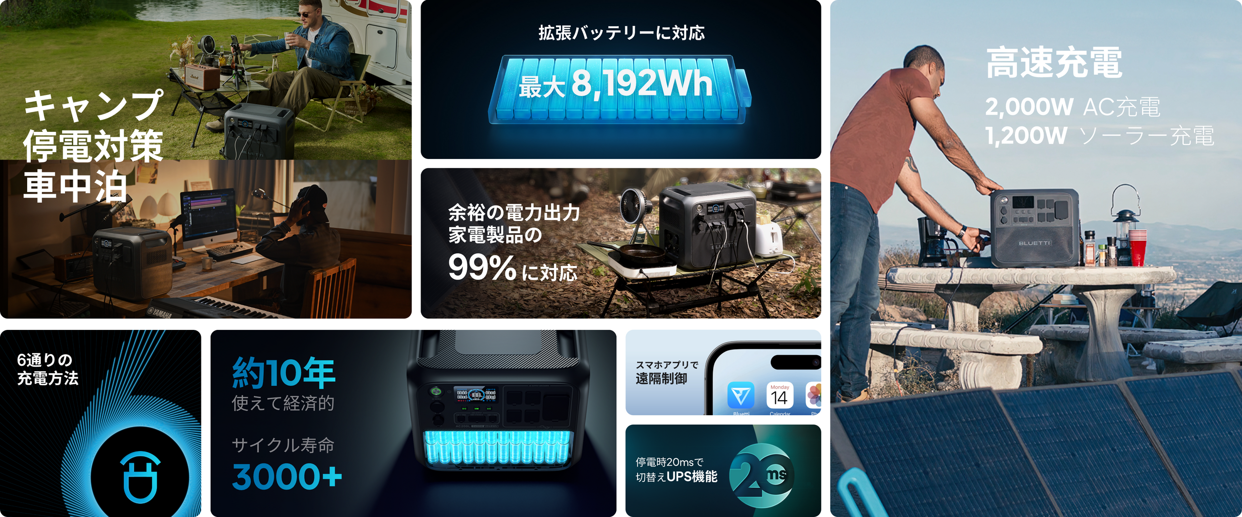 BLUETTI AC200L大容量ポータブル電源 | 防災推奨・車中泊・キャンプ |2048Wh、2000W
