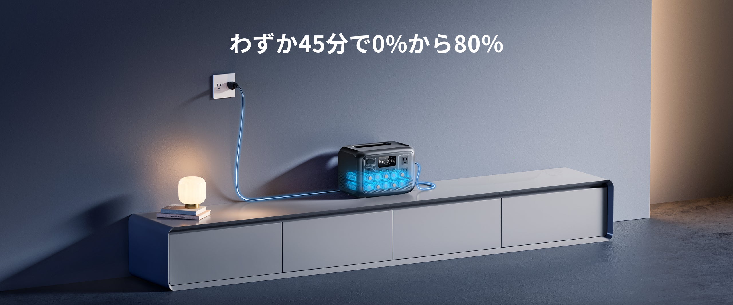 パススルー機能も搭載したポータブル電源は、充電中でも出力が可能です。