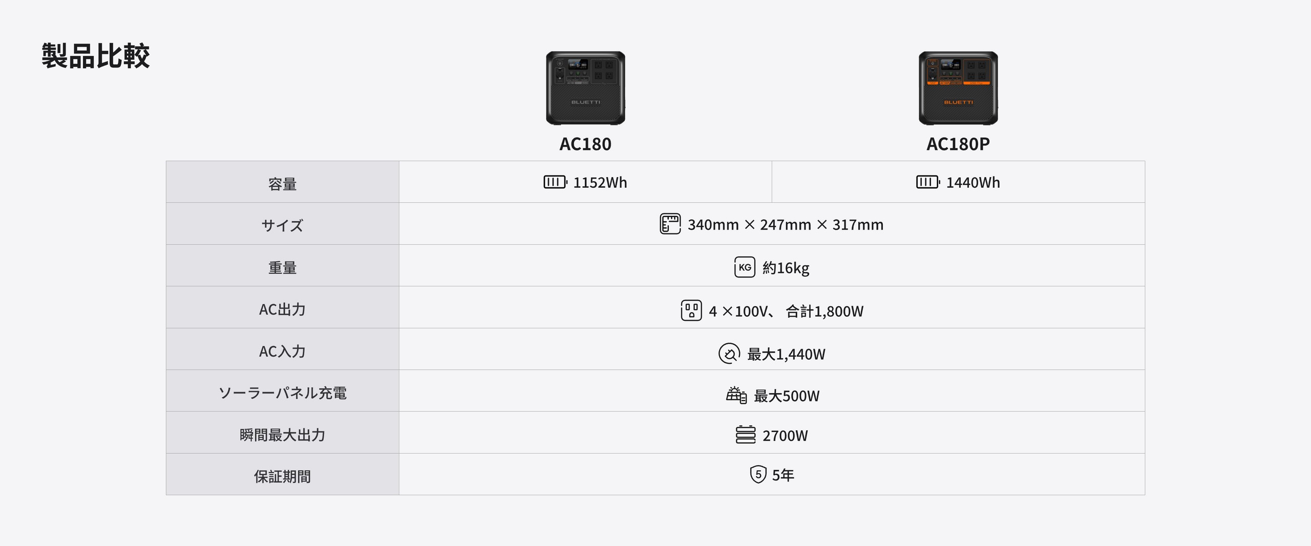BLUETTI AC180 大容量ポータブル電源 | 防災推奨 |1152Wh、1800W