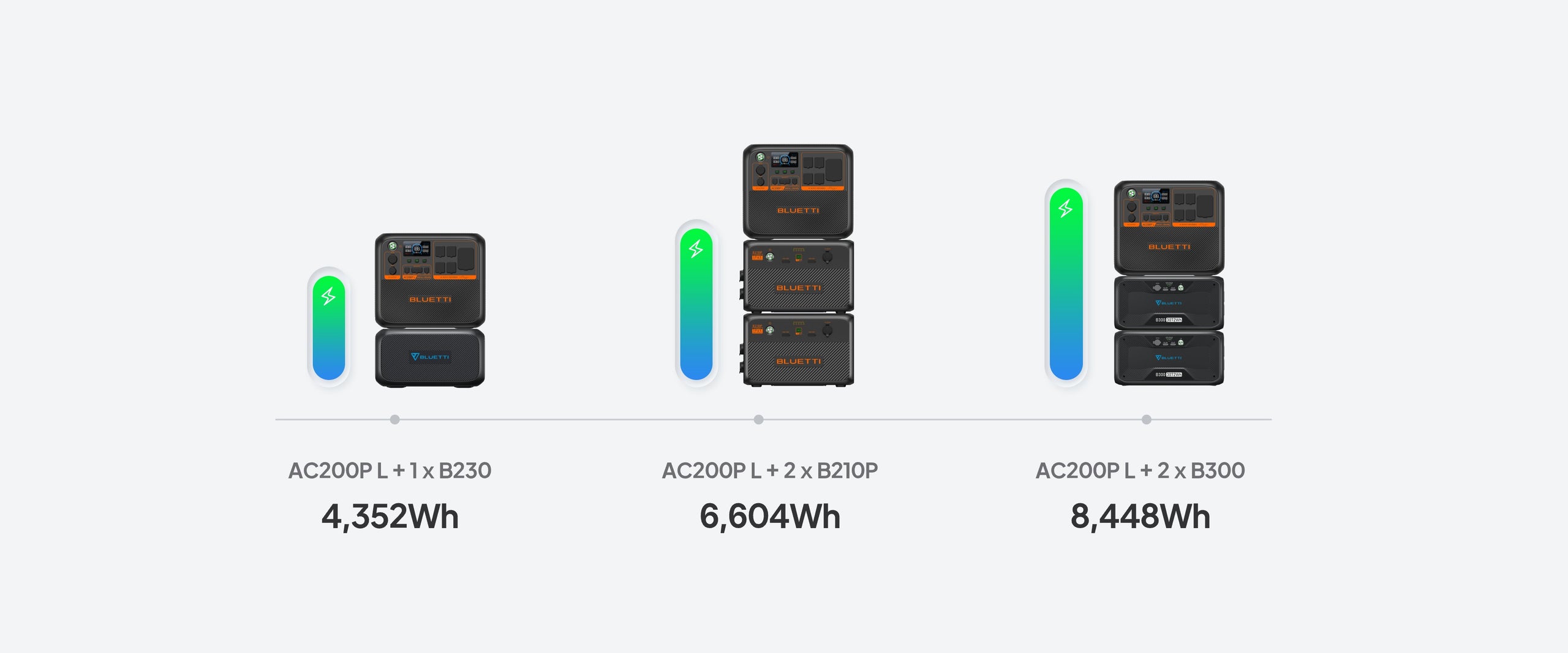 Q7:いくつのBLUETTI拡張バッテリーB210/B230/ B300がAC200PLに接続できますか?