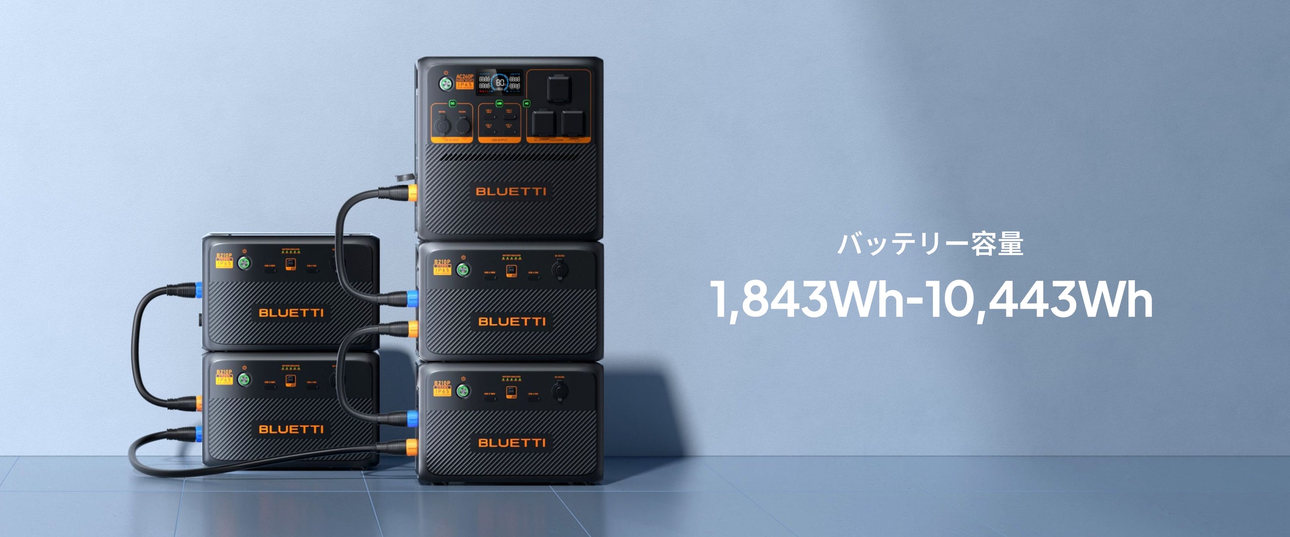 4個組み合わせることで合計 10,443Wh になり、アウトドアや緊急対策時でも普段使う電化製品を数日間に動かし続けることができて十分な電力を確保できます。