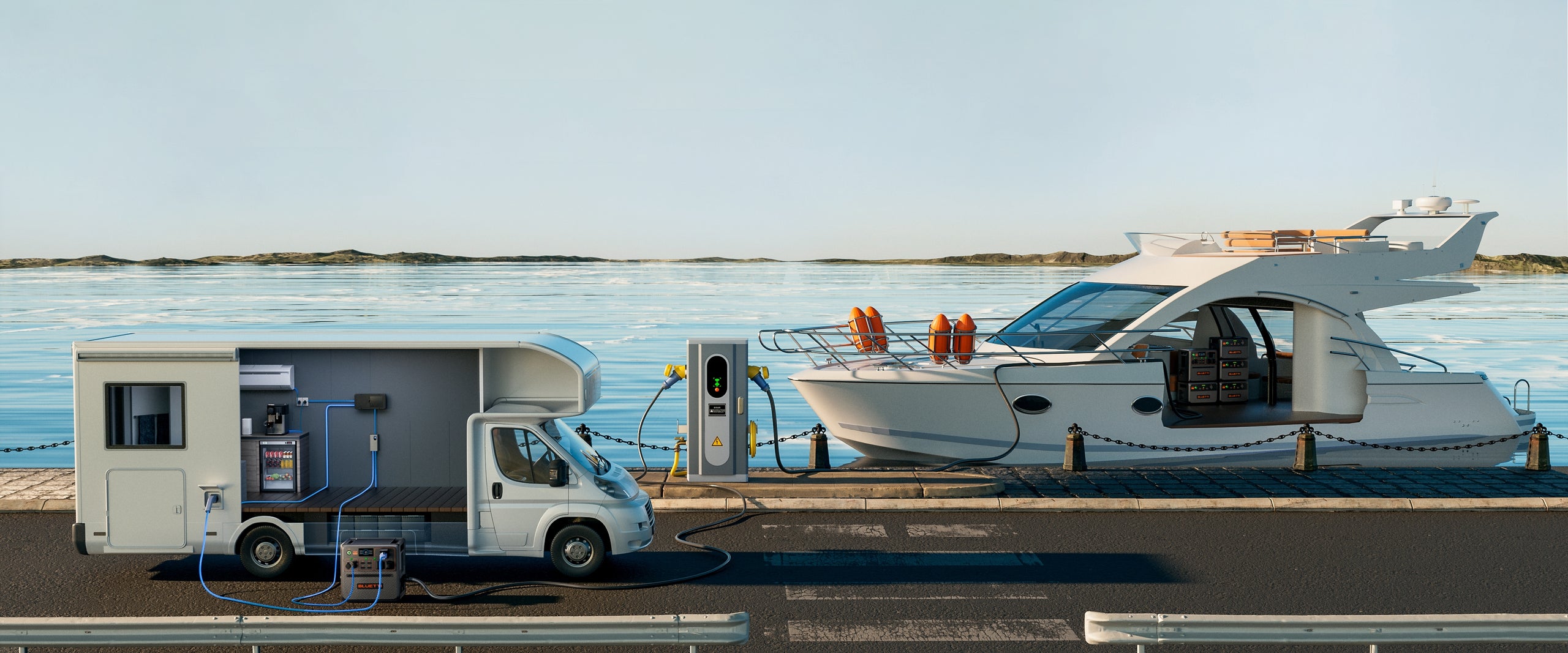 ショアパワーについて:AC240Pはショアパワーにも使用可能で船に電力を供給します。