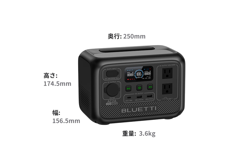 AC2A:1x BLUETTI PV200/MP200:≈ 1.8 時間*