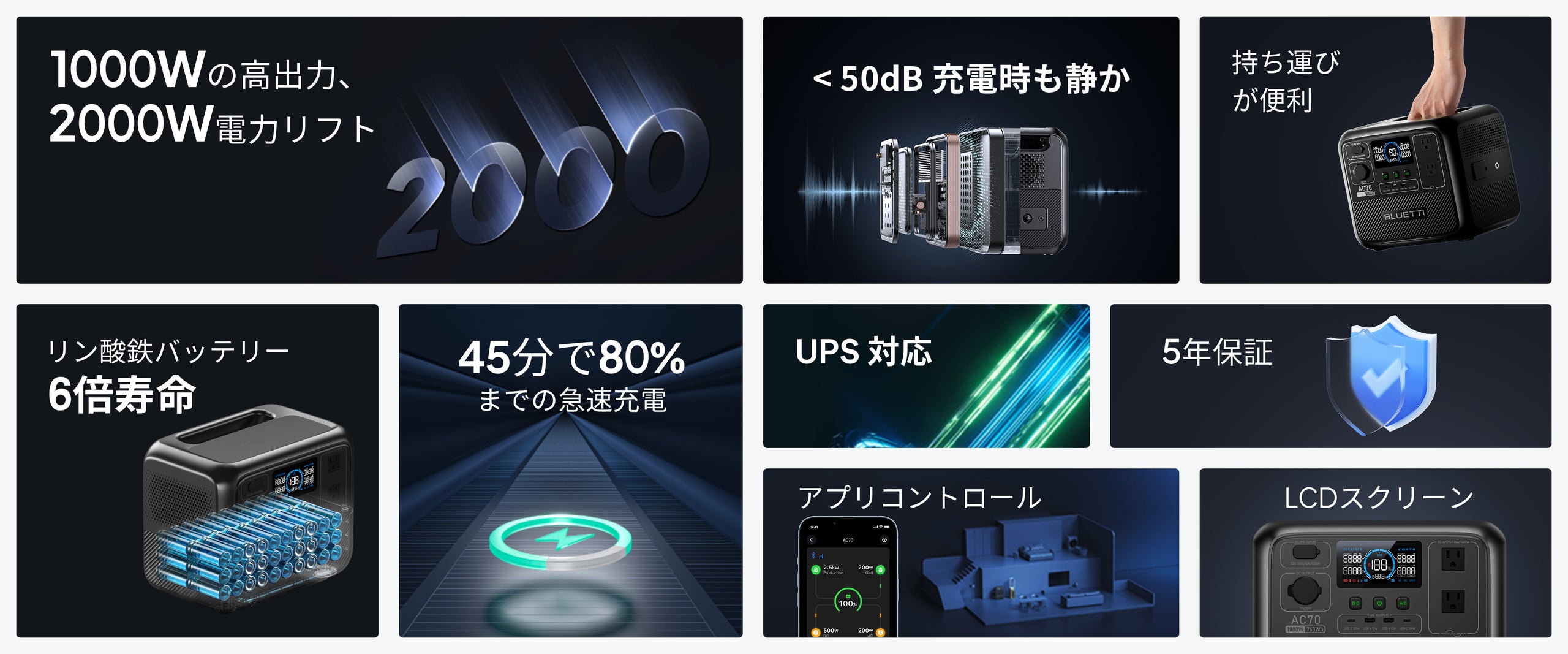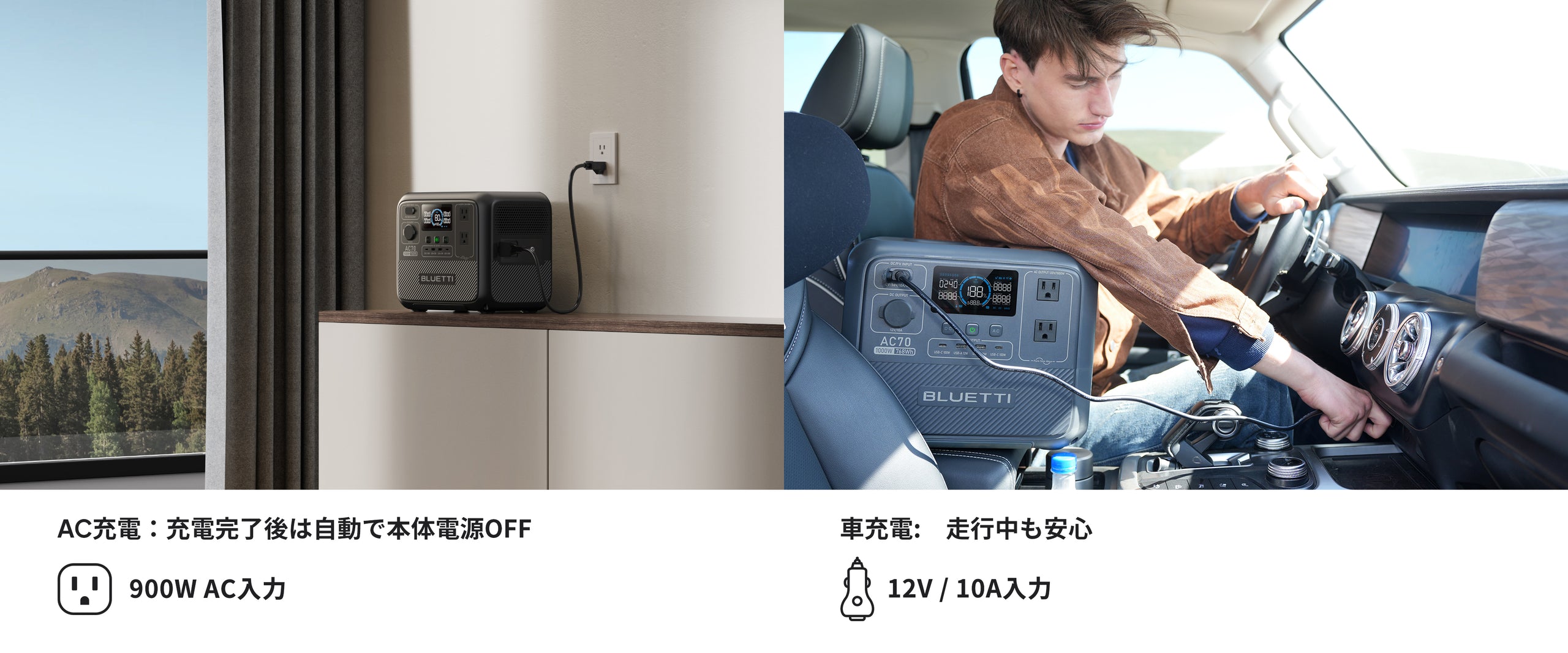 BLUETTI AC70 小型ポータブル電源 | 防災推奨・車中泊・キャンプ |768Wh、1000W