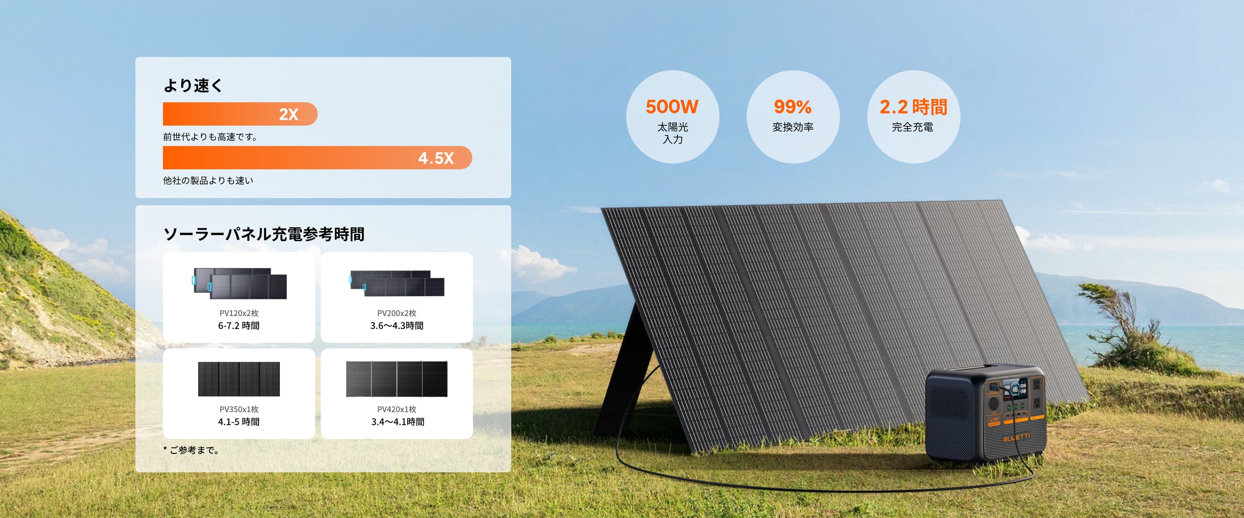 1× BLUETTI PV350≈ 3.75時間*