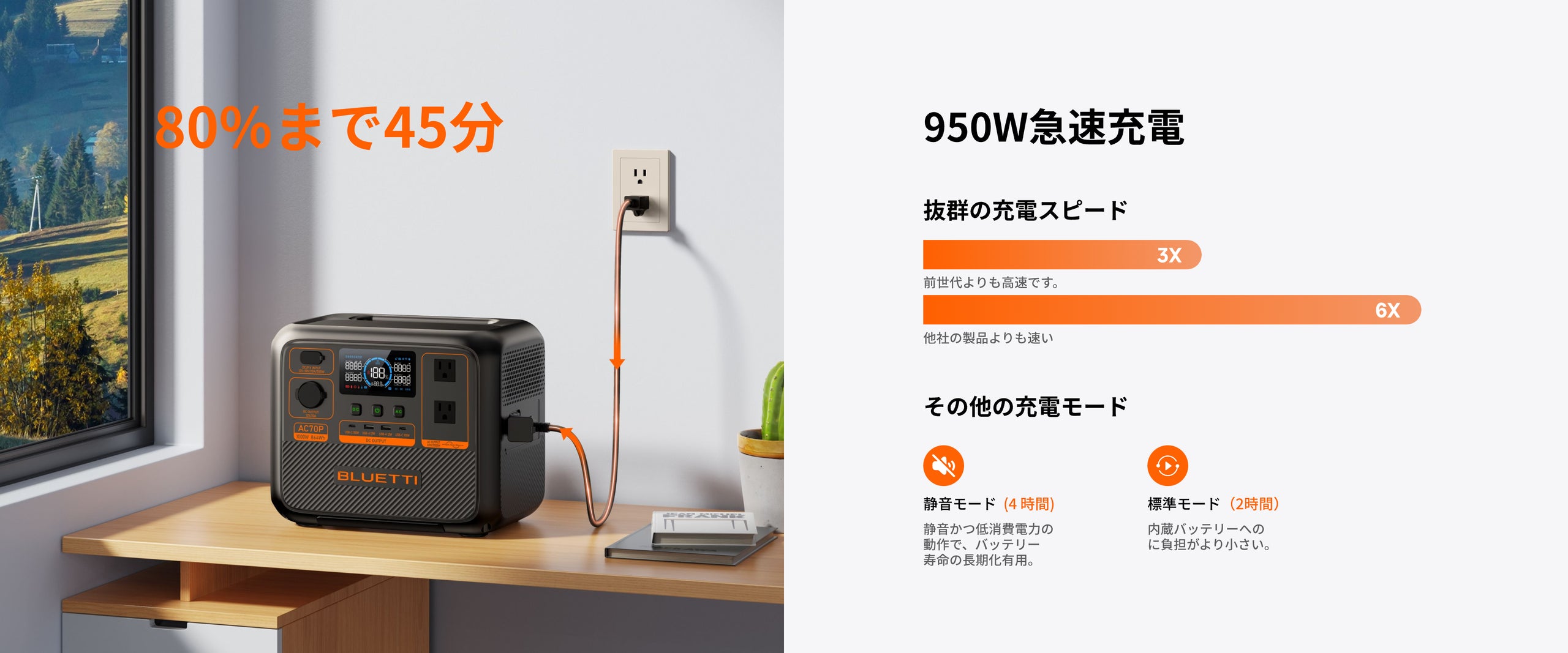 BLUETTI AC70P 小型ポータブル電源 | 防災推奨・車中泊・キャンプ |864Wh、1000W