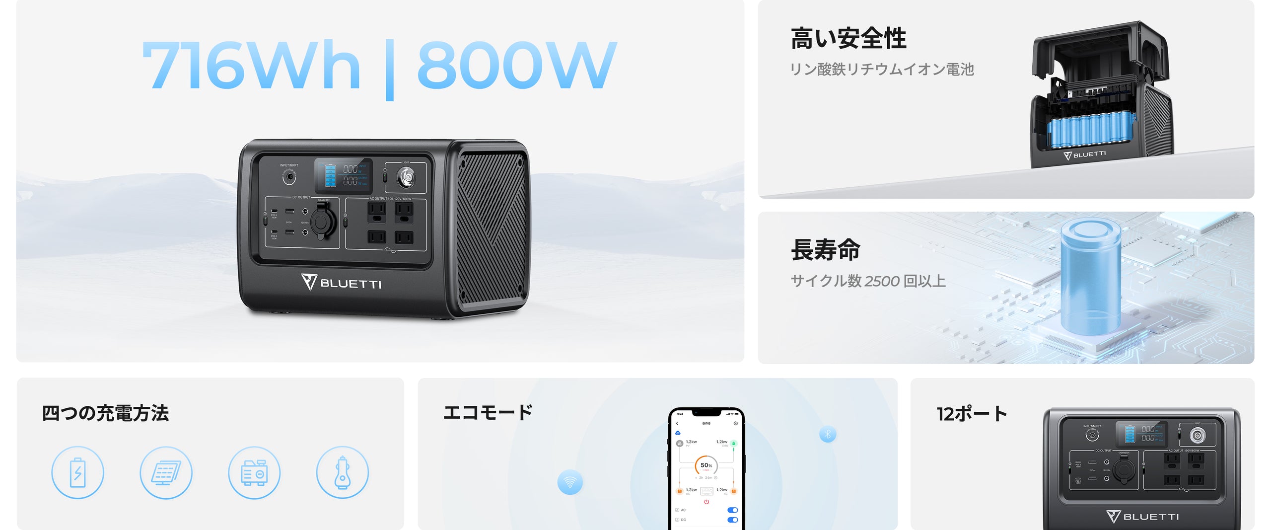 【終売】BLUETTI EB70S 小型ポータブル電源 | 防災推奨・キャンプ|716Wh、800W