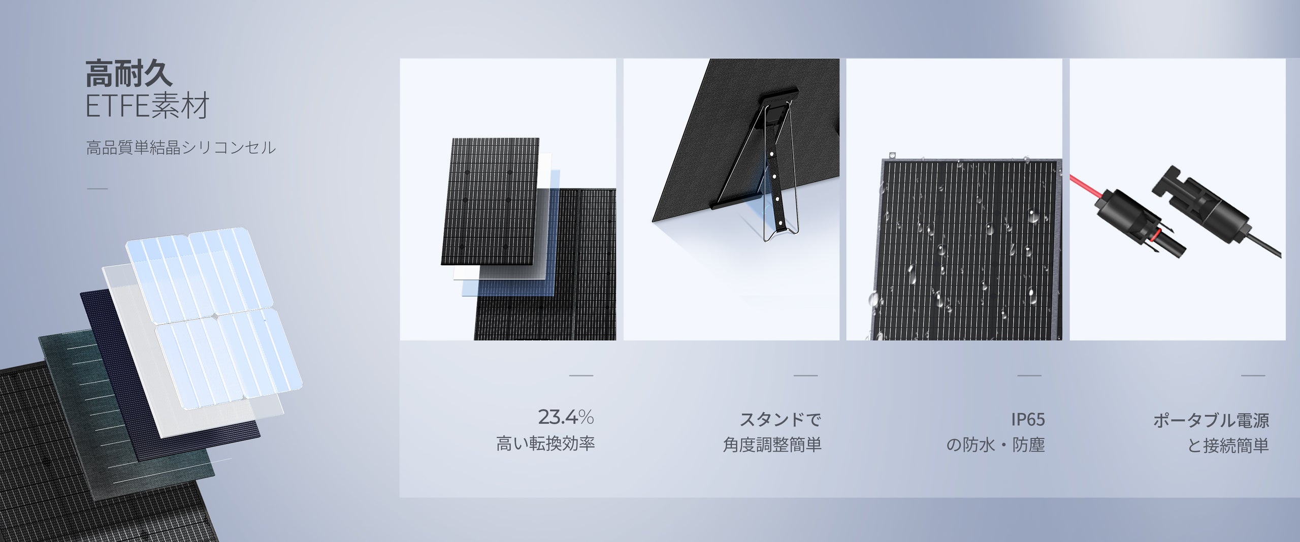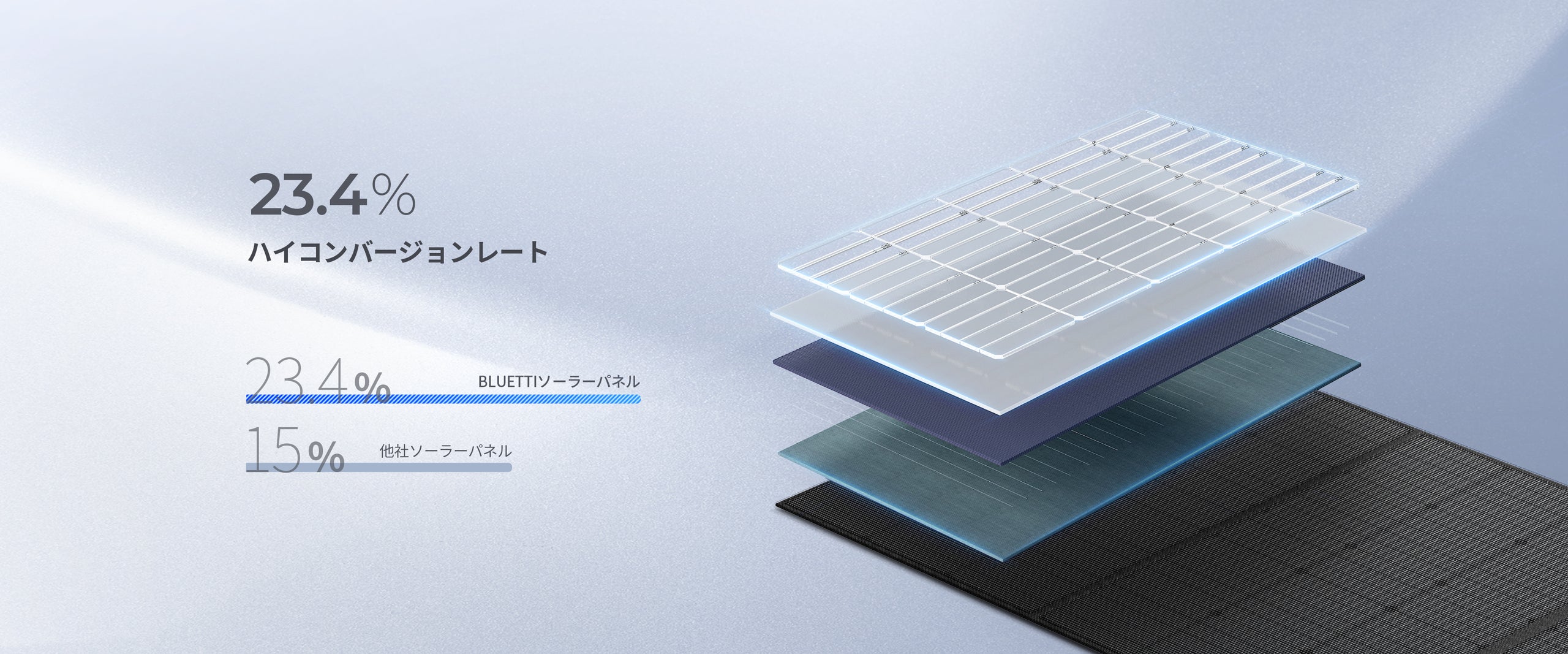 高品質の単結晶シリコンを採用し、最大23.4%の変換効率を実現しています。